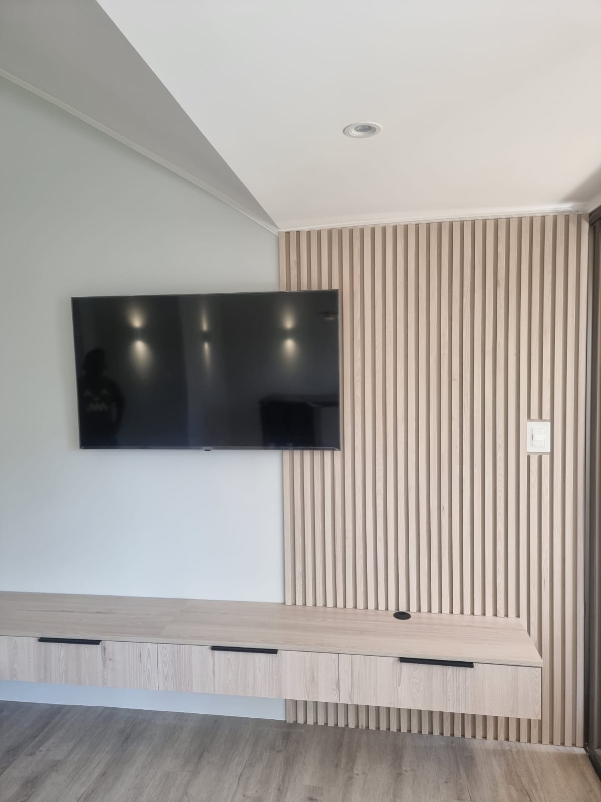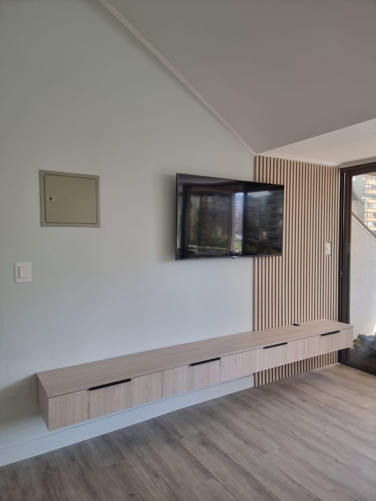 Melamina tokai, tirador punta bola negro, corredera oculta cierre suave.